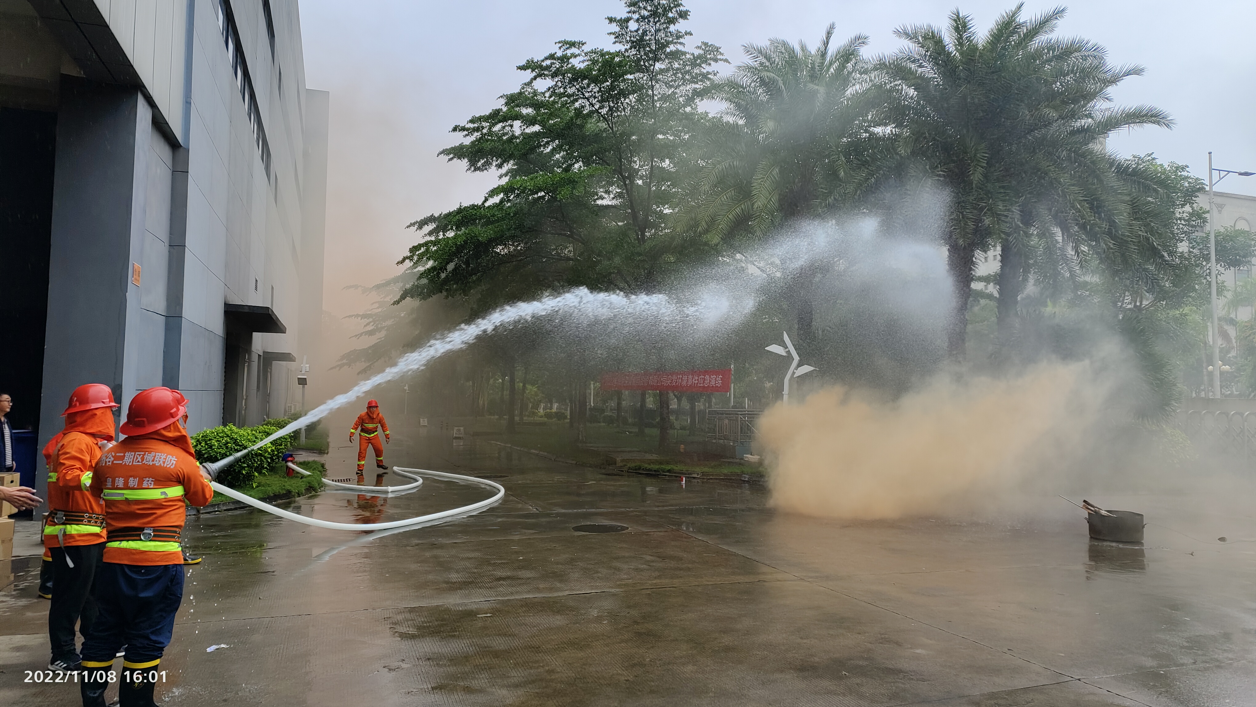 根據(jù)議程安排,全體與會人員來到戶外還進行了2022年度安全消防及突發(fā)環(huán)境事件應(yīng)急演練。本次演練腳本共有三個模擬場景,分別是防恐防暴演練、突發(fā)環(huán)境事件演練、消防安全演練。